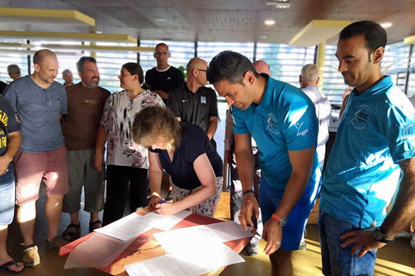 FISav is pleased to announce that the qualifying tournament of the next World Combat Championships will be held in Tunisia, at the end of May 2019. The convention for the organisation of the tournament and junior finals was signed in Boulouris, between Julie Gabriel, President of the International Savate Federation (FISav) and Nasreddine Nsibi, President of Savate in Tunisia, in the presence of the members of the FISav Board.